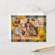 Unique, classy, trendy, pretty and decorative Thanksgiving holiday card. Unique, classy, trendy, pretty and decorative Thanksgiving holiday card. Cute GRATEFUL BLESSED GIVING THANKS text and room to customise or personalise with a photo and names (or family name) of your choice. With cute classic warm yellow fall Mums flowers on a teal blue green, pumpkin orange and dark burgundy wine red coloured rustic farmhouse inspired plaid tartan pattern background design. And a customisable season greeting poem on the backside of the card.