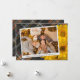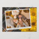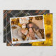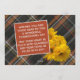 Unique, classy, trendy, pretty and decorative Thanksgiving holiday card. With room to customise or personalise with a photo and names (or family name) of your choice. With cute classic warm yellow fall Mums flowers on rustic farmhouse inspired tartan plaid pattern background design. And a customisable season greeting poem on the backside of the card.