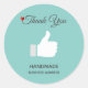 Elegant custom thumbs up image and Handmade Thank You text on light blue Stickers. Image can be customised with your logo image. Text can be personalised.
