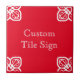 Custom tile sign. Spanish tile style. Red background. Custom colours can be requested.