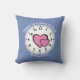 Fun Christian Scripture hearts pillow, designed with two hearts inside a clock face, set against a dark cornflower blue background. The curved text reads A TIME TO LOVE at the top and ECCLESIASTES 3:8 at the bottom. All text is CUSTOMIZABLE, so you can personalise this pillow by adding your name(s) or creating your own text, eg. Happy Anniversary, To the One I love, I will always make time for you, etc. This makes a great anniversary gift for couples, or Valentine's Day gift. Comes in other colours.