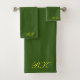Design your own Custom Personalised Towels, Monogrammed Bath Towel Set for your chic everyday home decor. Turn your bathroom into your own personal oasis with a custom towel perfect for drying you off in style. Towel set is a great gift for many occasions including every day bath decor, wedding events, house parties, Christmas party, thanksgiving dinner, corporate and company events, and more. Displayed is customisable colour green towels with yellow monogram option. Add your image, design, company logo or whatever your heart desires fo your choice festivities and celebrations.