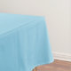 Custom sky blue Table Cloth featuring your business logo on the front, perfect for setting up a table at a tradedshow or for use at a corporate event or restaurant.