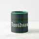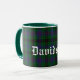 Great looking Scottish clan mug done in the traditional colourful Davidson plaid pattern. Old world style text in white reads Davidson and is customisable to read what you want.
