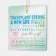 Transplant strong and organ donor awareness ornament in a unique, contemporary blue and green design with light watercolor background. Personalise the back of the ornament with your transplant type and date! Makes a lovely and thoughtful gift for the transplant recipient in your life. Created for the square ornament shape. Stay strong, warriors!