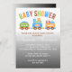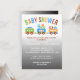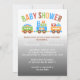 A custom product for baby shower featuring colourful transportation train and curve typo baby shower design