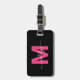 Create Your Own Stylish Elegant Custom World Traveller Pink Initial Name Monogram Luggage Tag. This chic and stylish luggage tag adds a refined touch to any travel experience, making it the perfect accessory for the world traveller or anyone with a serious case of wanderlust. On the front, the design showcases a unique bold monogram featuring a vibrant pink initial set against a rich black background, paired with your name in a whit script across it. The back includes the phrase “This bag belongs to” in the same script above your contact information in a clean, easy-to-read font, ensuring that your luggage is always identifiable. The name on back also is in pink, but all colours can be changed. This monogrammed luggage tag is an ideal gift for a girly girl, sorority sister, mum, or any travel enthusiast, combining style and functionality for a sophisticated, personalised look on the go. Perfect for birthdays, holidays, or just because, it’s a delightful addition to anyone’s travel essentials!