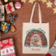 Custom Christmas holiday tote bag features a cute rainbow with cute gingerbread man and "Christmas Wishes Gingerbread Kisses" written in trendy font give it a beautiful festive look. You can customise this design with your or your loved one's name, or remove the name by clicking "Personalise this template" button. Perfect Christmas gift for your loved ones.