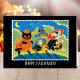 Three little cats go trick-or-treating, marching along on a starry night. Who could resist them? Such enthusiasm and dedication to their spooky costumes — a pumpkin, a witch and a vampire! Say "Happy Halloween" with this fun holiday greetings card. All the text can be customised or deleted, so you can personalise it with your own words and make it truly unique. Perfect for sending jolly witchy wishes to your kids, family and friends. Cards are available printed with either a semi-gloss or matte finish.