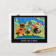 Three little cats go trick-or-treating, marching along on a starry night. Who could resist them? Such enthusiasm and dedication to their spooky costumes - a pumpkin, a witch and a vampire! Say "Happy Halloween" with this fun holiday postcard. All the text can be customised or deleted so you can personalise it with your own words and make it truly unique.