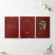Elegant Ruby Red & Gold Wedding Trifold Invitation. Fully customisable text for a 5" x 7" celebration announcement. Features classic borders on Signature Matte paper. Perfect for couples seeking timeless design. Includes white envelopes.