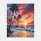 Capture the magic of a tropical paradise with this vivid sunset beach scene featuring swaying palm trees, crashing waves, and a glowing sky painted in fiery hues of orange, purple, and pink. This vibrant coastal design is perfect for beach lovers, tropical travelers, sunset chasers, and anyone who dreams of ocean escapes. A stunning gift that brings warmth and joy with customised name/monogram written in the sand or delete for only illustration.