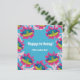 Custom happy birthday floral blue modern card. Custom blue card with big flowers for her. Personalise with text, name , firstname, message. Use this blue bright colours card for a woman who loves flowers, garden, tropical islands.