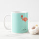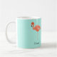 A custom coffee mug featuring a hand-painted flamingo. Easily add your name with the personalize button.