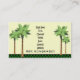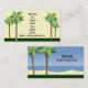Custom Wording. Tropical theme. The front has 2 palm trees on each side and a green chequered border at the bottom with room for all your business information - just add your personalised info as needed, and delete any extra lines as you prefer. The back side has 2 palm trees with blue ocean water and sand. Cool Contemporary Sleek. The text font style fits the South Beach theme, but can be customised to any font stlyle or sized to fit. Great for any costal business from hotels and bars, professional businesses or independent contractors, travel agents, landscapers, or general services.