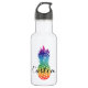 Custom tropical pineapple fruit water bottle. Cute drink accessory for sports, gym, fitness, workout and more. Add your own name or quote. Fun gift idea for friends, family, sister, mum, girlfriend, coach, daughter, wedding bride etc. Colourful rainbow colour design with stylish script typography. Available in small, medium and big size. Cutsom drinkware for women and teen girls.