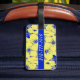 A lovely and one of a kind luggage tag of tropical yellow flowers against a cobalt blue background. Ready to be customised with your name on the front and phone number on the back.