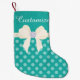 Custom Turquoise Dotted w/Cream Bow & Diamonds Small Christmas Stocking