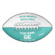 Create your own custom white turquoise blue Football with Name, Number, Team Name, Slogan and Year. Personalise this simple classic football template with your custom message, name, team name and year. Easily personalise it for a cool sport keepsake. Create your unique personalised gift for coach, boy's birthday, football player, teammates and friends.