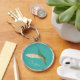 Unique hummingbird keychain featuring a rufous-tailed hummingbird on a turquoise background. Bird image taken from original watercolor painting by C. Dobbins.
