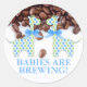 Custom Twin Boy Giraffes Babies are Brewing Classic Round Sticker