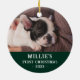 Custom Two Sided Green First Christmas Puppy Photo Ceramic Ornament
