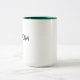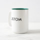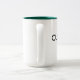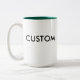 Custom Two-Tone Large 15oz Ceramic Mug - HUNTER GREEN Inside, 4.5” high x 3.4” diameter. 11 oz or 15 oz options. Microwave and dishwasher safe. FDA food and beverage safety approved. Black, lime, maroon, navy blue, orange, pink, red, yellow, hunter green, and light blue colour options.