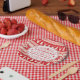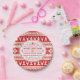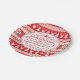 Festive custom Ugly Sweater Christmas Holiday Party paper plates with folk-art knit Nordic pattern background in red and white. Vintage typography layout with fancy swirls, snowflakes, tree, deer, and antlers. Perfect party accessories for ugly xmas sweater theme events or casual at home gatherings. Personalise it with your name or custom greeting. Dress up your holiday table with these fun party supplies and create a happy and hilarious table setting for you and your guests to enjoy. Bright and cheerful, classic modern and cute whimsical way to set the spirit of the season for all your friends and family with trendy but traditional rustic charm.