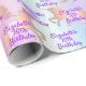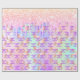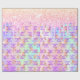 Elegant, girly, glamourous style party gift wrapping paper for a 10th (or any age) birthday. A trendy holographic coloured background with unicorn and rainbow colours in pink, purple, mint green. Decorated with drips in pink, purple and a golden unicorn pattern. Personalise and add a name and age 10. Purple coloured letters.