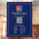 Custom Opening Hours Open Closed Upload Your Business Company Logo QR Code Here Add Text Modern Elegant Simple Blue & Gold Template Office & School / Promotional Products & Small Business Supplies / Signs & Posters / Window Decals & Window Clings / Opaque Design: All-over White Underbase Vertical Rectangle Design Window Cling.