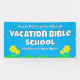 Here's a bright sign with attention-getting, cheerful nature graphics to let people know about your VBS offerings, services or event! Personalised with your own words and church name! Even change the background colour and move the graphics!