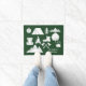 Easily add the name of your favourite campground and the state it's in to create your own souvenir camping doormat or add a family name or other text to create your custom welcome mat for your vacation cabin featuring a collage of camping scenes and outdoor equipment in white against a hunter green background. Makes a cool gift for campers and anyone who loves the great outdoors. There are illustrations of mountains, a tent, a campfire, a lantern, hiking boots and more.