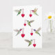 Cute Valentine Day's card with Anna's and Costa's hummingbirds carrying heart ornaments.