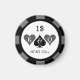 Custom value poker chip casino wedding favour gift magnet. Black and white design with monogrammed initials of bride and groom plus date of marriage. Personalise with your monogram, date and dollar value number etc. Round magnetic marker coin with hearts and spade symbols. Las Vegas theme marriage gifts. Available in small, medium and large. Background colour can be changed.