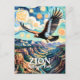 Soar above the majestic cliffs of Zion National Park with this vivid Van Gogh–style California Condor illustration, where swirling skies and radiant canyon hues bring the Southwest to life. Painted in expressive post-impressionist strokes, this artwork captures the grandeur of Zion Canyon, the winding Virgin River, and the rare beauty of North America’s largest flying bird—the California Condor.