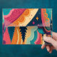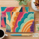 Add bold personality to your mail with this full-colour retro rainbow envelope, bursting with sweeping swirls, playful curves, and rich colour layering. The design combines sunny yellows, burnt oranges, vivid aquas, and berry purples into a celebration-ready palette that looks equally at home at a summer wedding or a corporate product launch.