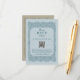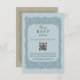 Custom vintage elegant blue Enclosure Card created for online RSVP with web site and QR code. Enclosure Card is designed with blue geometric shapes reminiscent of lace. The text is written in sophisticated blue with a light shadow on a light blue background. This design combines vintage and modern style, as the card has a QR code and a completely new way of communication.