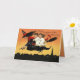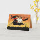 Wistful vintage Halloween design features two excited tykes taking a ride on a witches broom on Halloween night. The adorable vintage painting shines through this design so well that the charm of Halloweens past can't help but reveal itself.