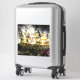 The stick looks amazing. Unfortunately, it would not stick on our suitcase as it was textured. When we found a non-textured (smooth) suitcase, the sticker stuck and looks great. The printing looked awesome.