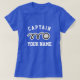 Custom beach volleyball captain t shirt for women's team. Personalised sportswear for player, coach, team members, trainer, mum, girl etc. Add your own name, slogan, motto, funny quote or saying. Blue and white colours. Sports apparel for ladies. Cute ball logo design with athletic typography. Women's clothing outfit for tournaments, club, competition etc. Sporty Birthday gift idea for her.