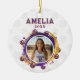 Celebrate your favorite volleyball player with this unique personalized photo ornament! Featuring a vibrant purple and gold design, this custom keepsake allows you to proudly display a photo of your athlete, along with their name and a year. Perfect for commemorating a successful season, or a special Christmas ornament. It's a wonderful way to capture memories and show team spirit for years to come.