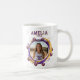 Custom Volleyball Player Photo Sports Coffee Mug. Featuring a vibrant purple and gold design, this custom keepsake allows you to proudly display a photo of your athlete, along with their name and a year. Perfect for commemorating a successful season, or a special gift. It's a wonderful way to capture memories and show team spirit for years to come.