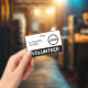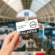 Personalise this event staff name badge with your event logo, employee name, or other custom text. This is a name badge with a modern minimalist design. You can easily customise the colours, fonts, and design and optionally add content to the back.