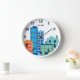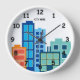 Custom wall clock with city skyline drawing