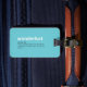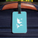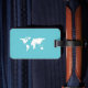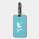 Front: Wanderlust definition in white/grey text; Back: world map print in white. Select any background colour to customise your tag.