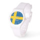 Custom watch with Swedish flag of Sweden. Add your own personalised name. Cool watches with country flag. Scandinavian pride design.