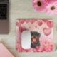 Custom Watercolor Dog Valentine's Day Pink Hearts Mouse Pad