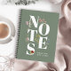 Whimsical serif typography arranged in an artistic layout spells out the word notes in large white type face over a contrasting sage green background. Carefree watercolor wildflowers dance among the lettering and add feminine appeal to this design. A text template is included to personalise with your name or other text. This personal stationery item makes a wonderful gift for any woman on your shopping list or a treat for yourself! Shown here with college ruled inside pages, there are other page options that you can select if you prefer different page types.