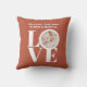 This We Love You Dad Photo Pillow is decorated with the word LOVE in white typography on a rust background.