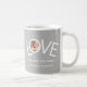 This "We Love You Dad!" Mug is decorated with the word LOVE in white typography on a grey background.